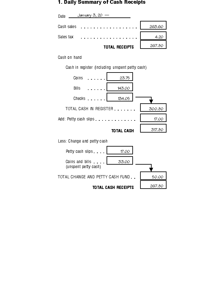 - Cash register tape receipts.
