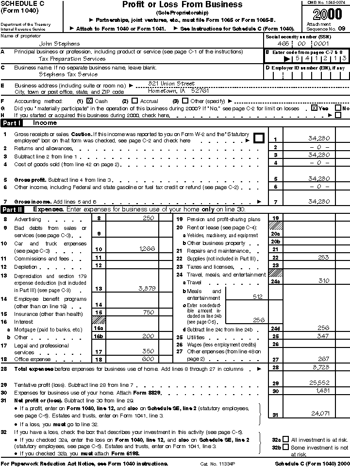 the result, $1,481, on lines 32 and 34, and on Schedule C, line 30.