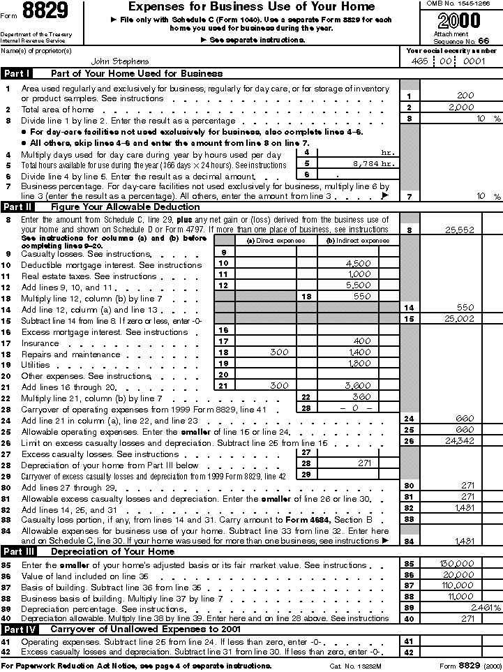 Schedule C. He enters the depreciation on his home ($271) on Form
