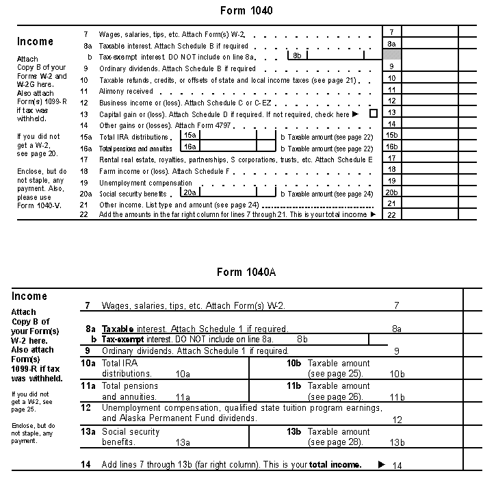 the total amount on line 15a, Form 1040 (or line 11a, Form 1040A), and