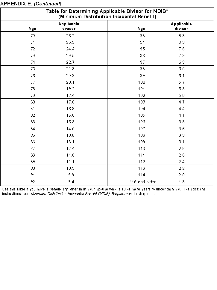 (Minimum Distribution Incidental Benefit). These tables are