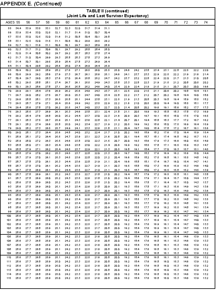 - Appendix E -- Life Expectancy Tables