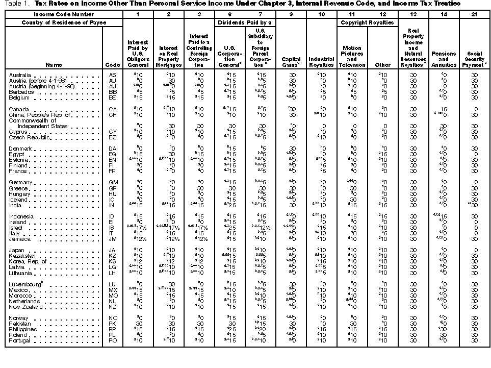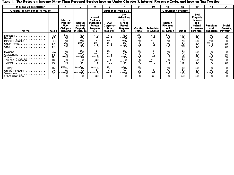 Table 1. Tax Rates on Income Oter Than Personal Service Income Under Chapter 3, Internal Revenue Code, and Income Tax Treaties