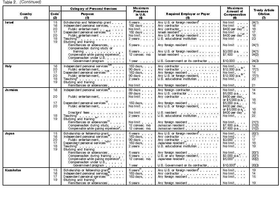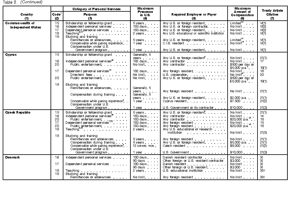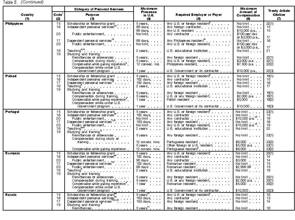 Table 2. Compensation for Personal Service Performen in United States Exempt from U.S. Income Tax Under Income Tas Treaties