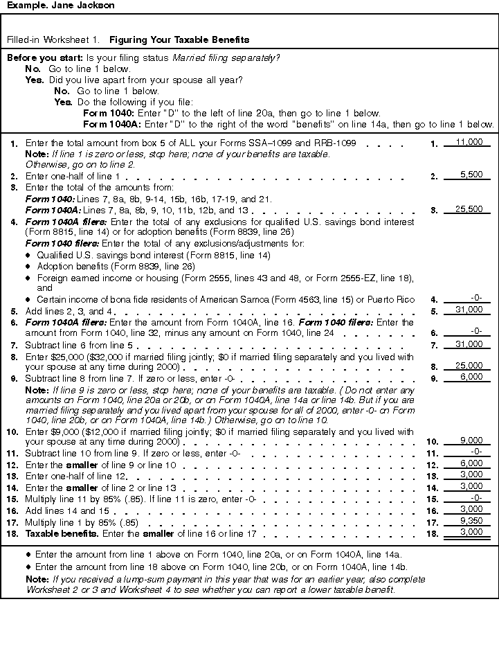 benefits for 2000 under the regular method. She completes Worksheet 2
