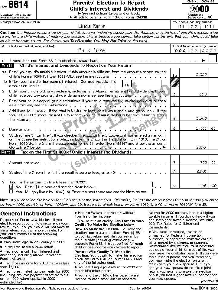 Filled-in Form 8814 for Linda Parks