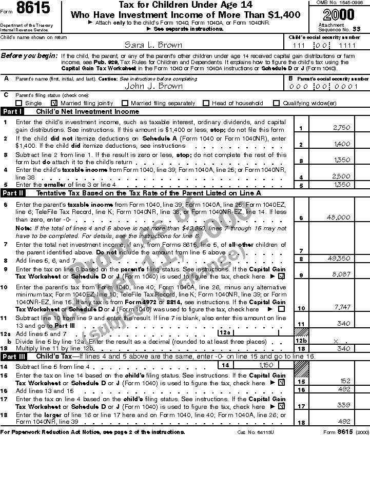 her Form 8615 for calendar year 2000 (January 1 - December 31).