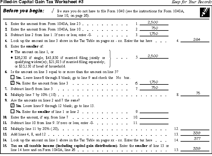 Filled-in Capital Gain Tax Worksheet #3 (showing 339)