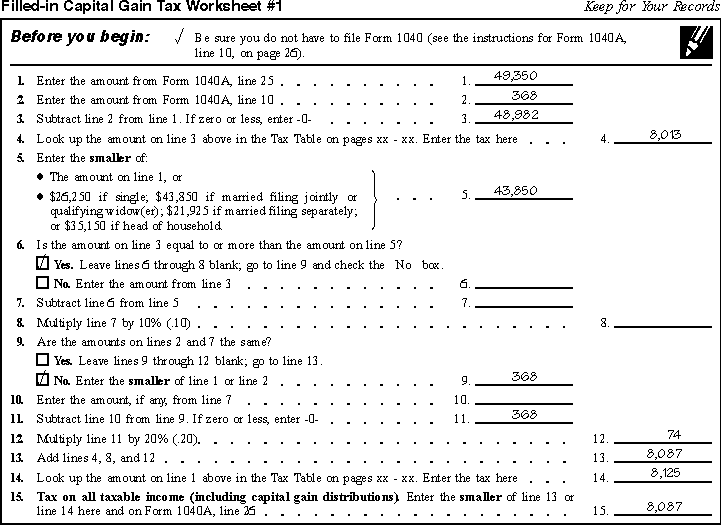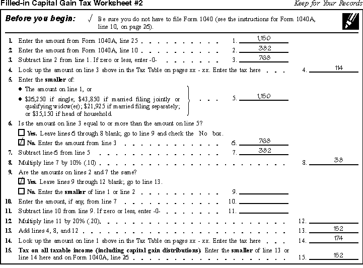on Filled-in Capital Gain Tax Worksheet #2.