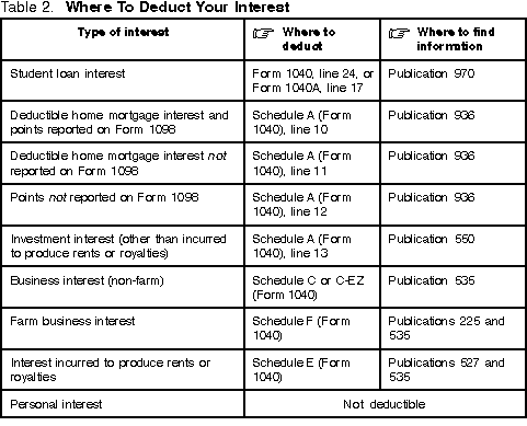 If you did use all or part of any mortgage proceeds for business, investment, or other deductible activities, the part of the interest on line 13 that is allocable to those activities may be deducted as business, investment, or other deductible expense, subject to any limits that apply. Table 2 shows where to deduct that interest. See Allocation of Interest in chapter 5 of Publication 535 for an explanation of how to determine the use of loan proceeds.