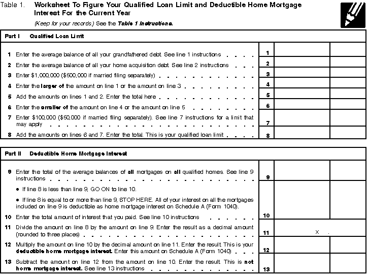 In either of those cases, you do not need Table 1. Otherwise, you may use Table 1 to determine your qualified loan limit and deductible home mortgage interest.