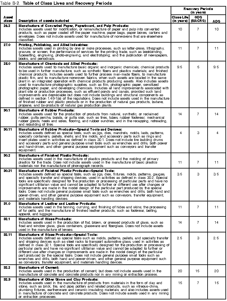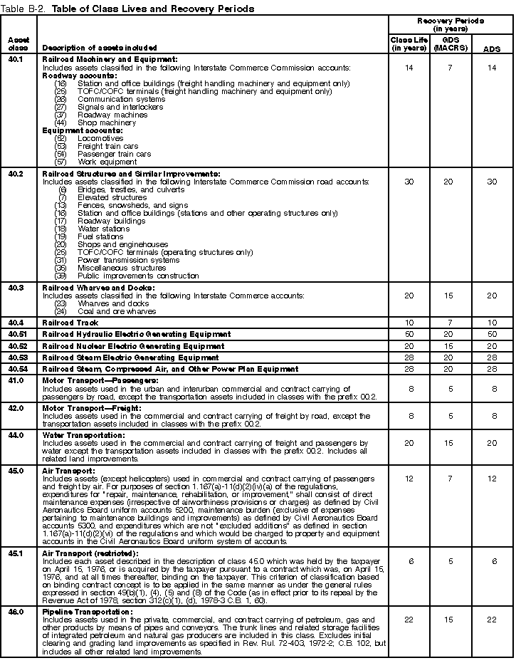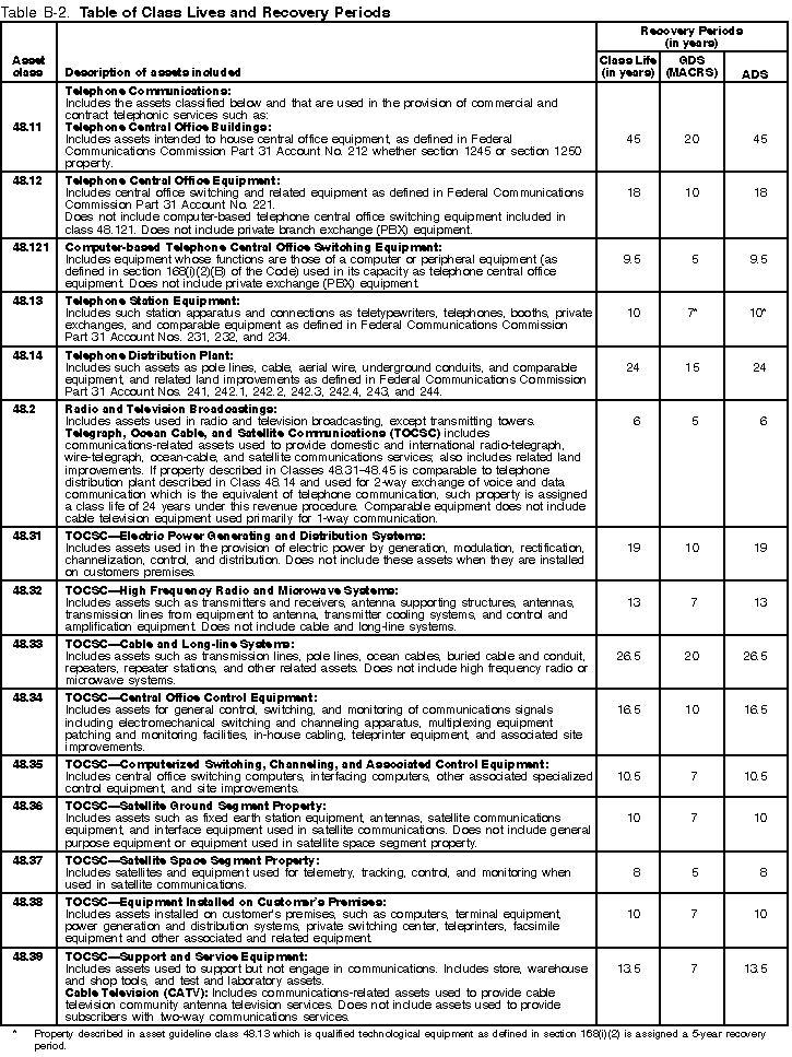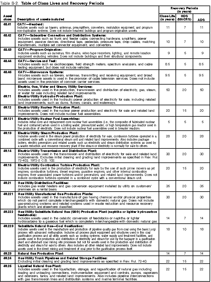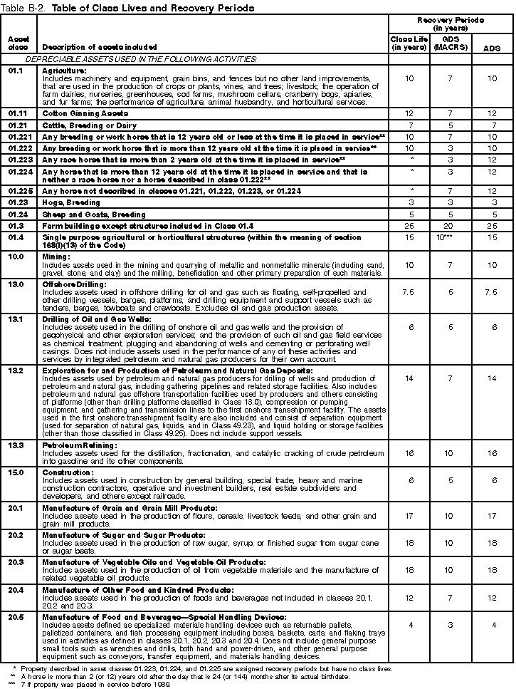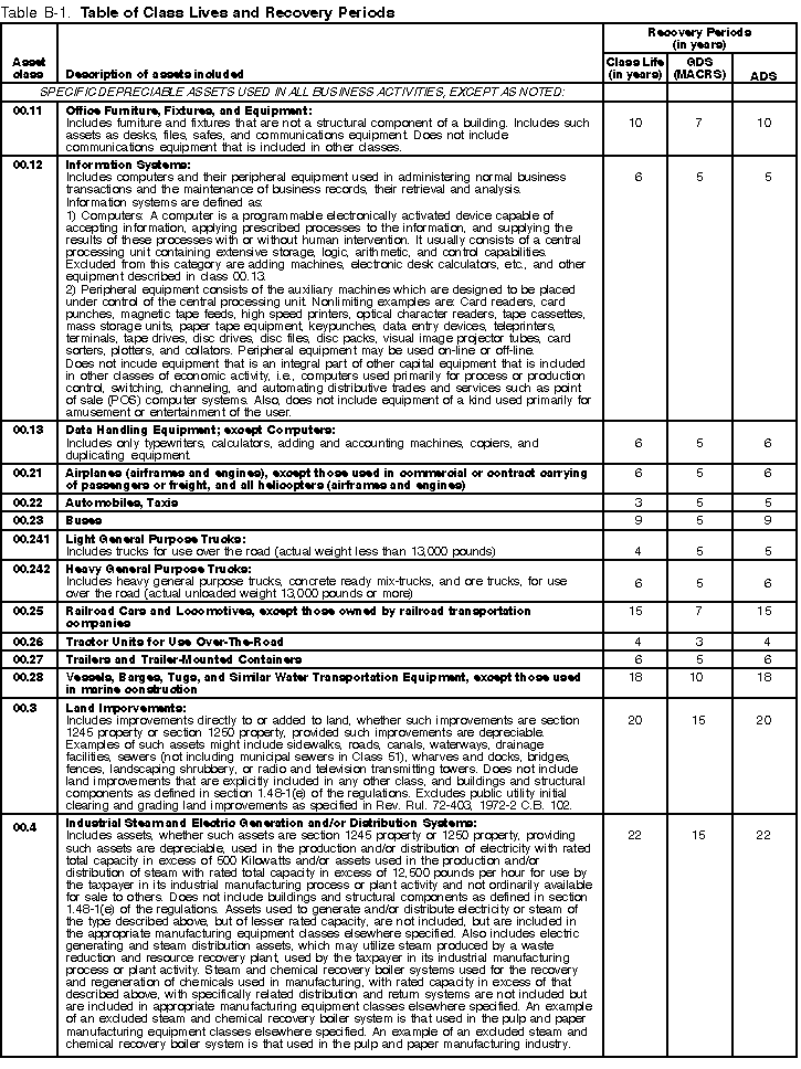 The Table of Class Lives and Recovery Periods has two