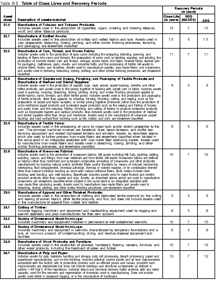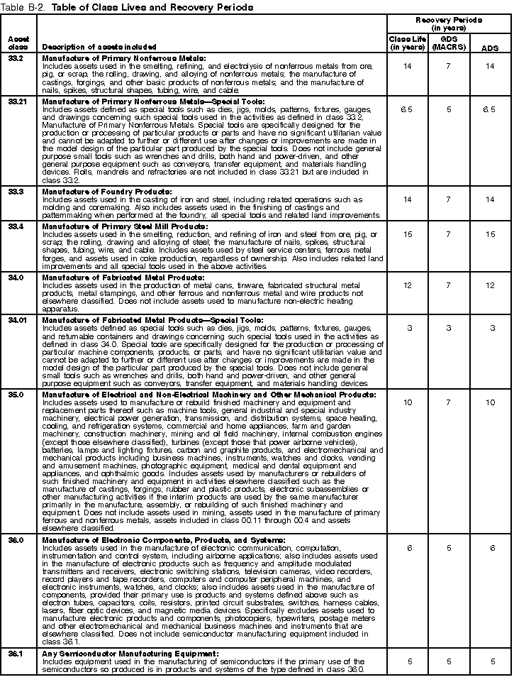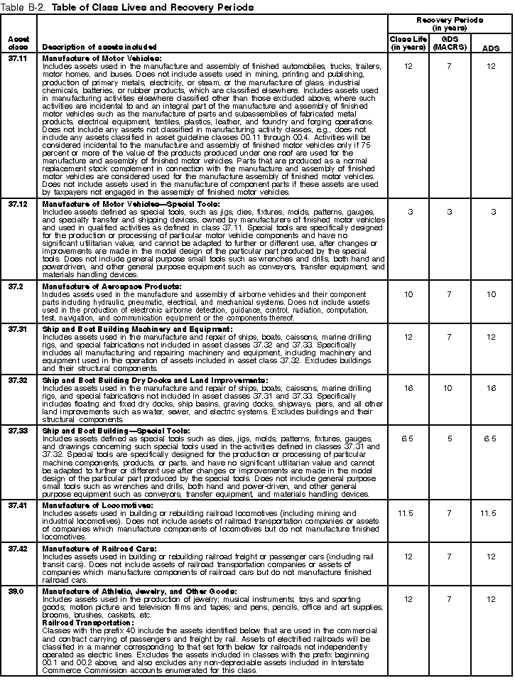 the recovery period shown in the appropriate column of Table B-2