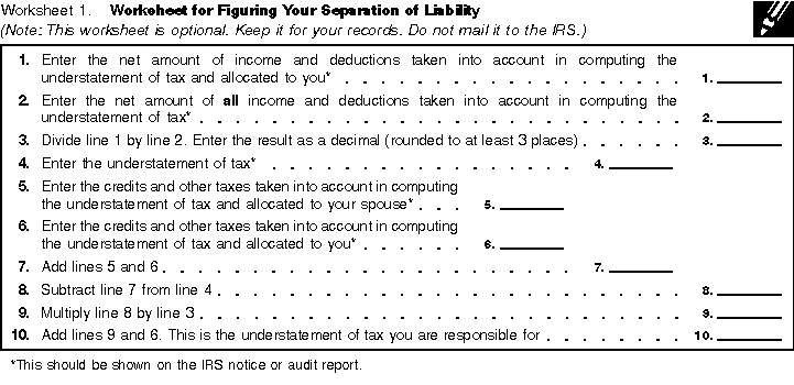 Worksheet for Figuring Your Separation of Liability.