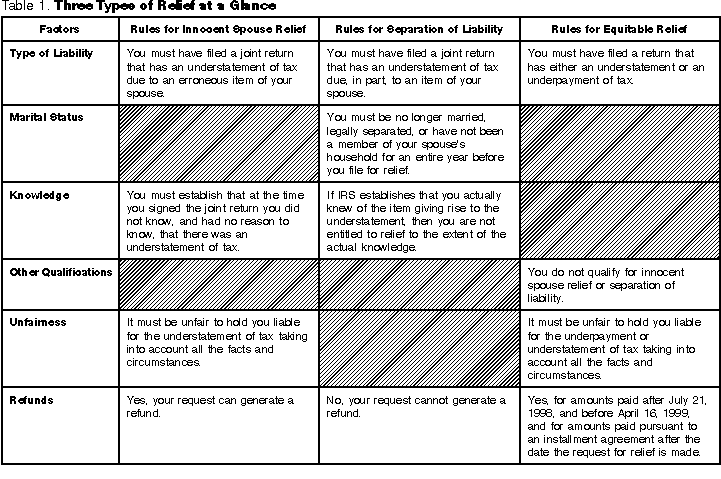 - Innocent spouse relief.