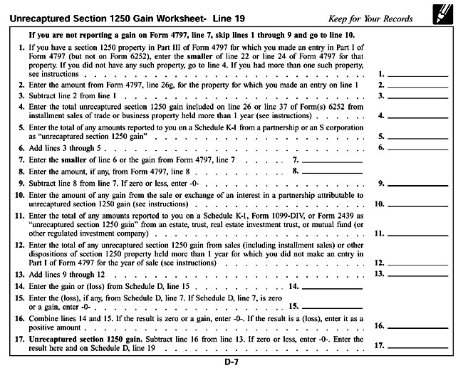 1250 Gain Worksheet, Line 19