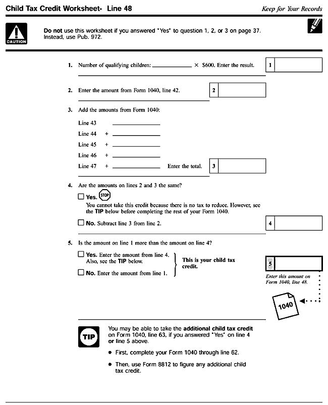 Child Tax Credit Worksheet - Line 48