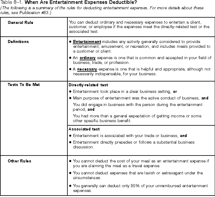 You may be able to deduct business-related entertainment expenses