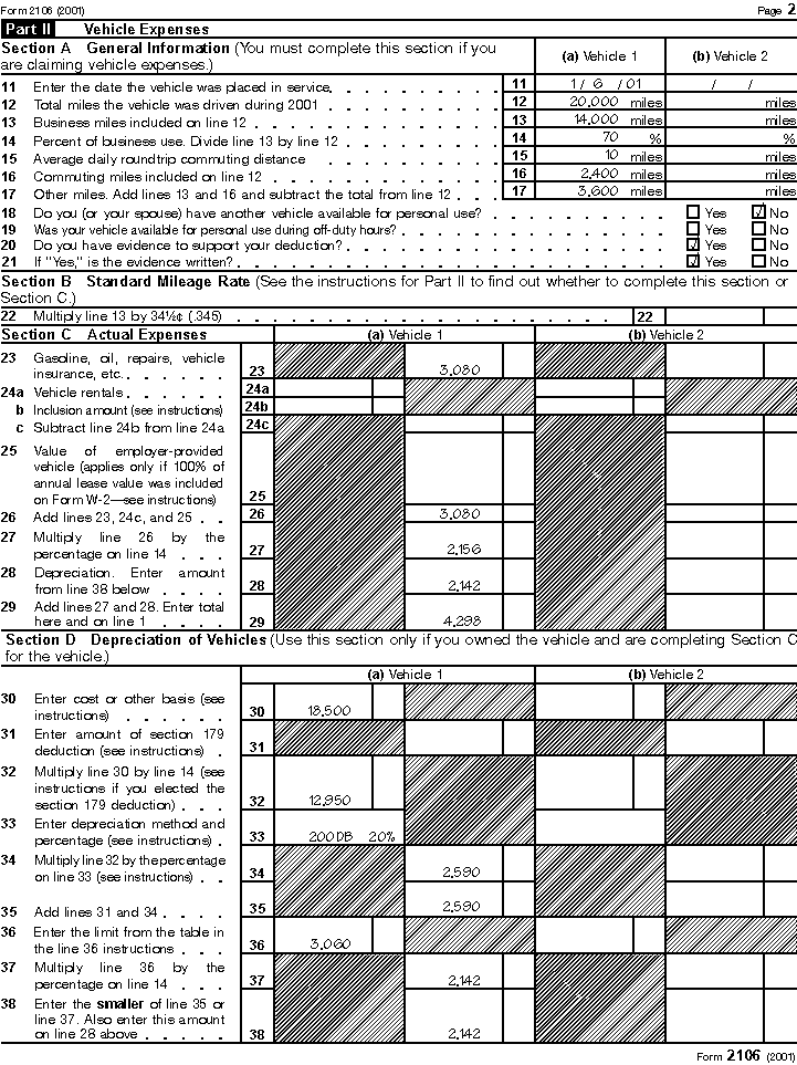 actual car expenses. He completes Part II, Section A, as shown later on his illustrated form. He does not claim the