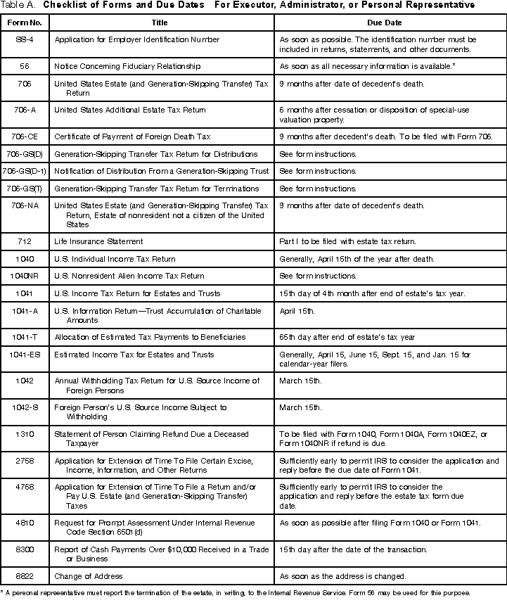 2001 income tax return. Having determined the tax liability for your father's final return, you now figure the estate's taxable income. You decide to use the calendar year and the cash method of accounting to report the estate's income. This return also is due by April 15, 2002.