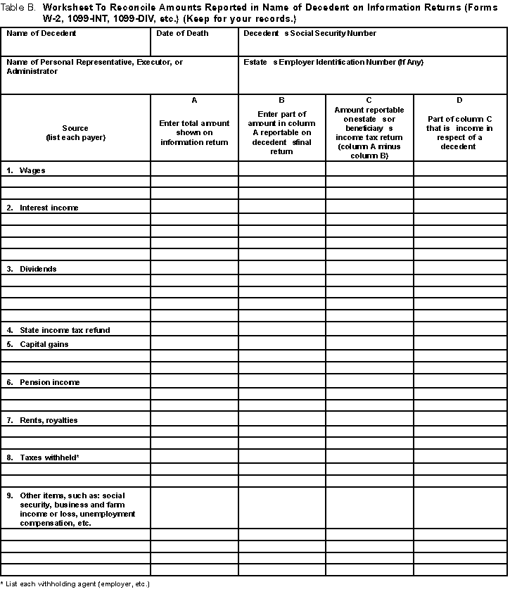 Worksheet to reconcile amounts reported in name of decedent on information returns