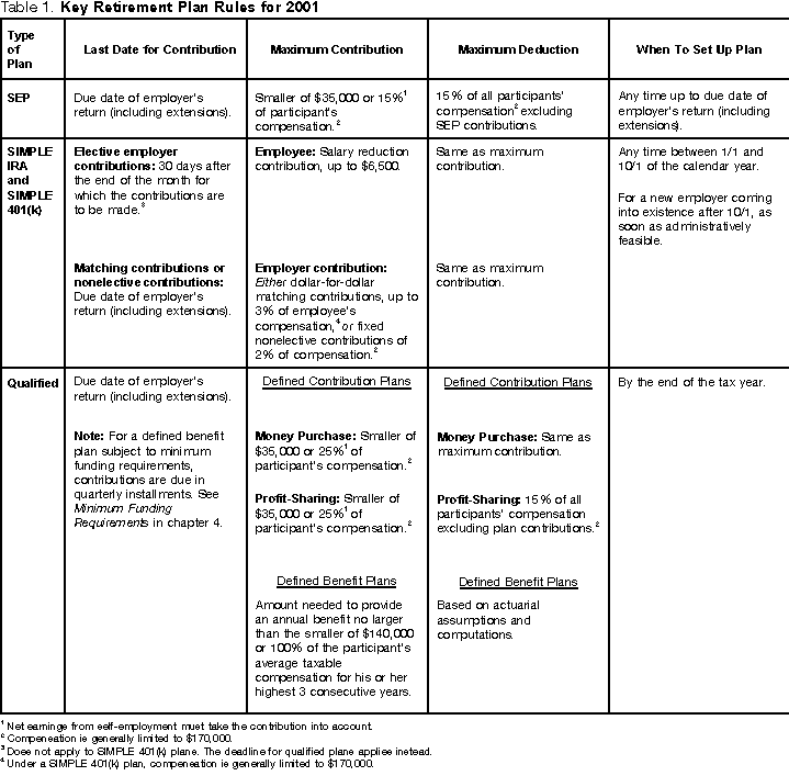 Table 1. Key Retirement Plan Rules