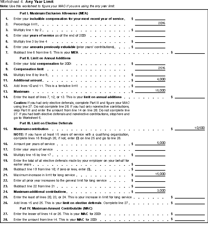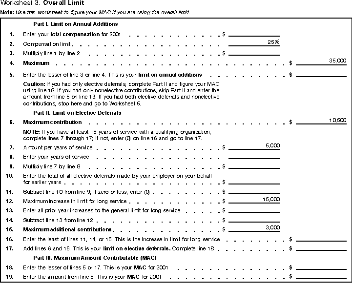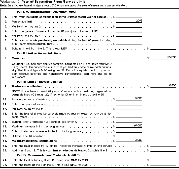 Worksheets 1 through 5, and 7 will help you figure MAC. Worksheet 6 will help your determine if you have excess contributions.