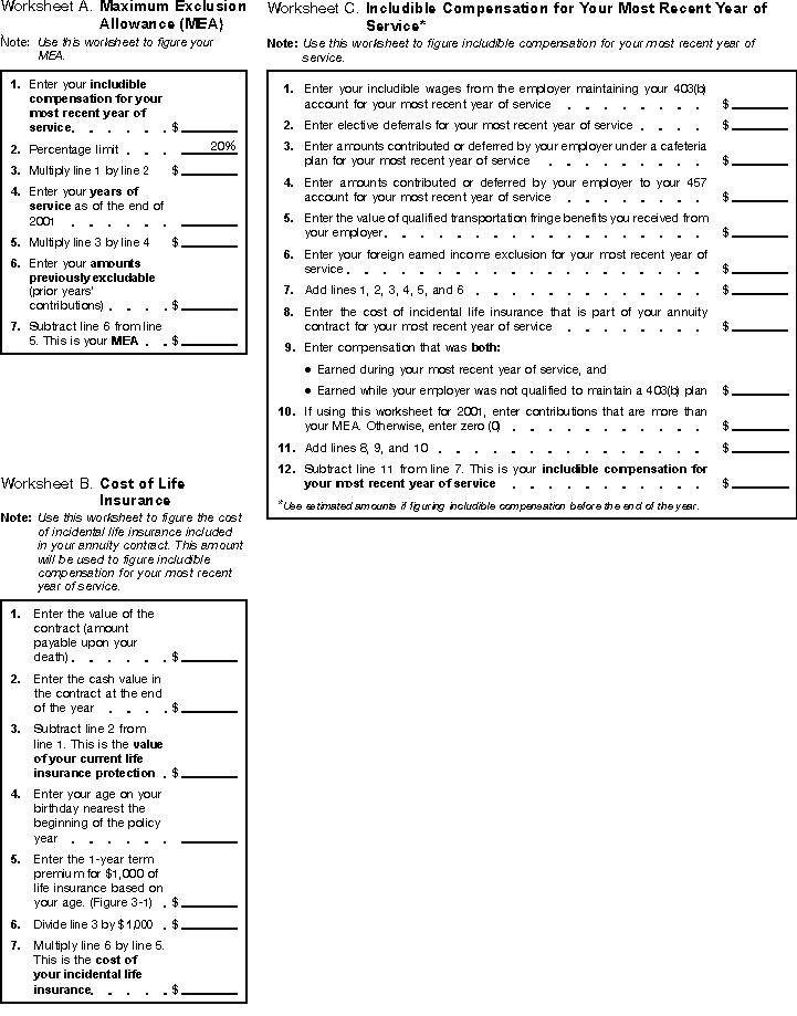 • Worksheet A. Maximum Exclusion Allowance (MEA).