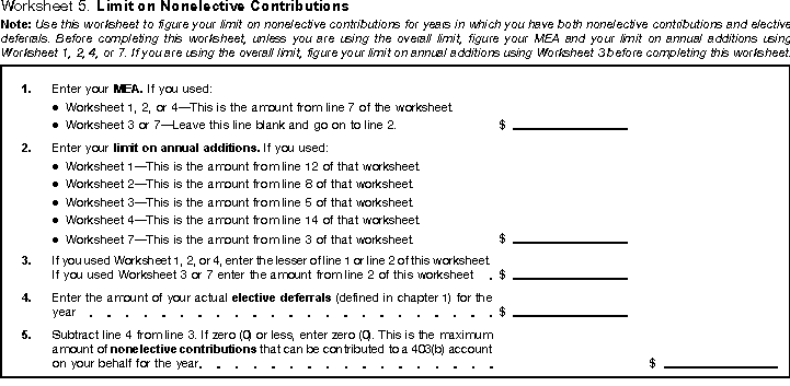 • Worksheet 5. Limit on Nonelective Contributions.