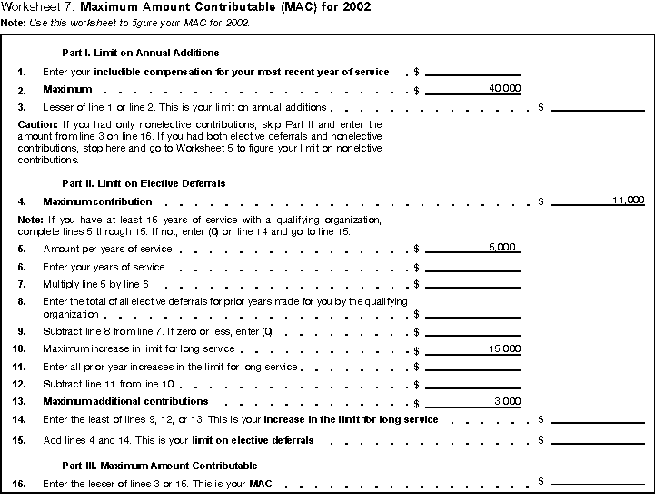 • Worksheet 7. Maximum Amount Contributable (MAC) for 2002.