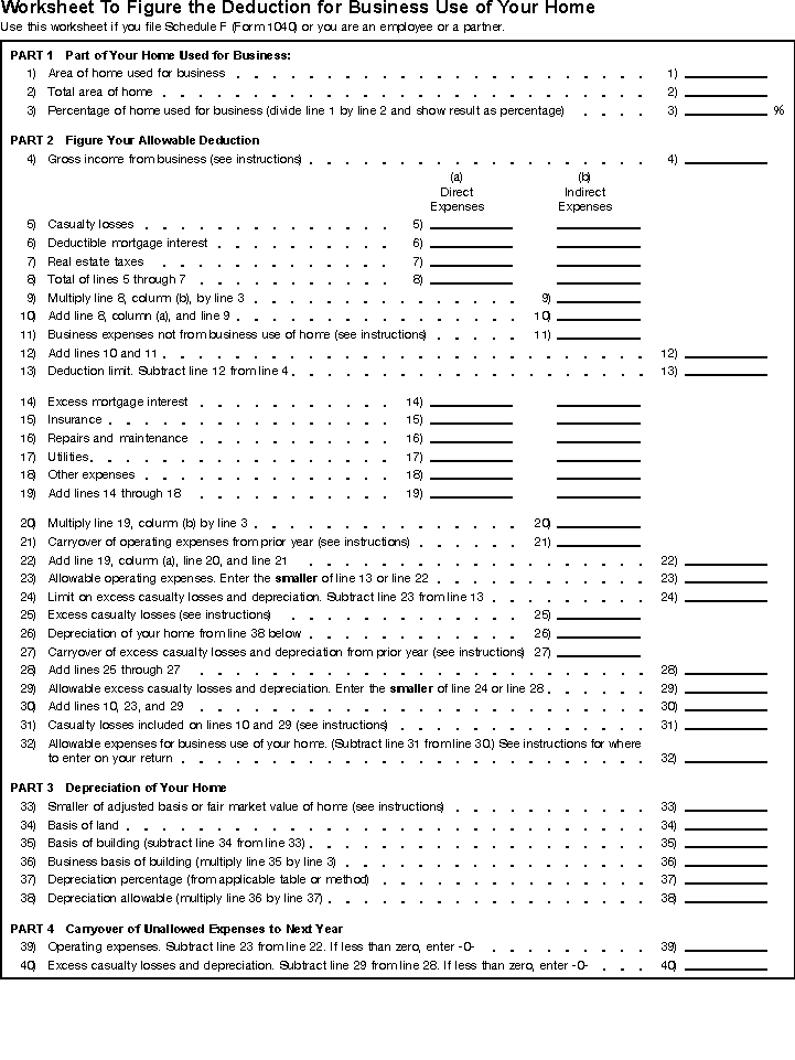 Worksheet to Figure the Deduction for Business Use of Your Home