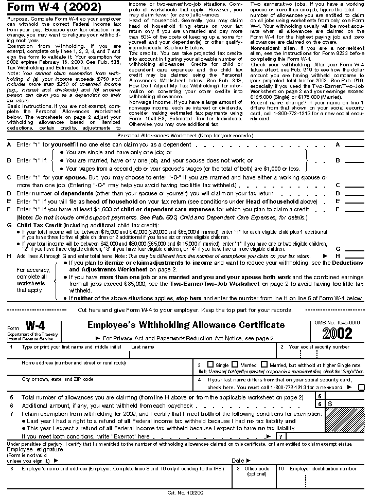 Once you determine that you expect to have more tax withheld than your projected tax liability for 2002, you may be able to decrease your withholding by increasing the number of allowances that you claim on Form W-4.
