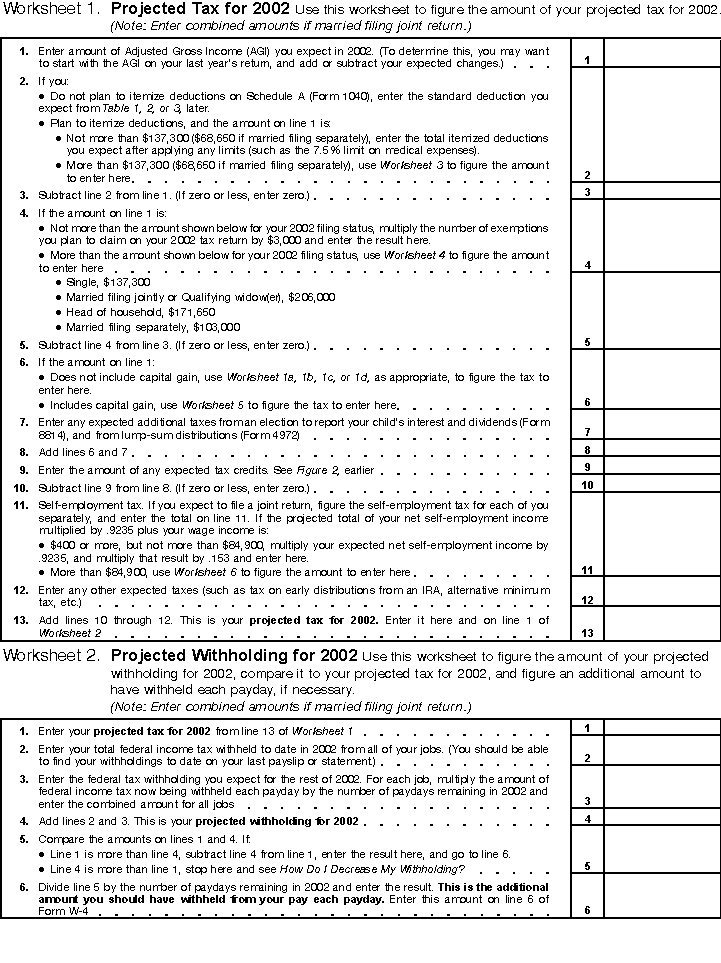 Worksheets 1 and 2 - Projected Tax for 2001 and Projected Withholding for 2001