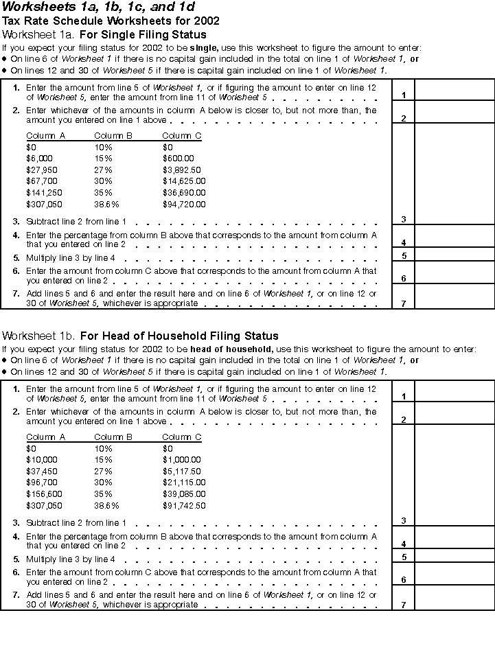 Worksheets 1a and 1b Tax Rate Schedules for S and HoH