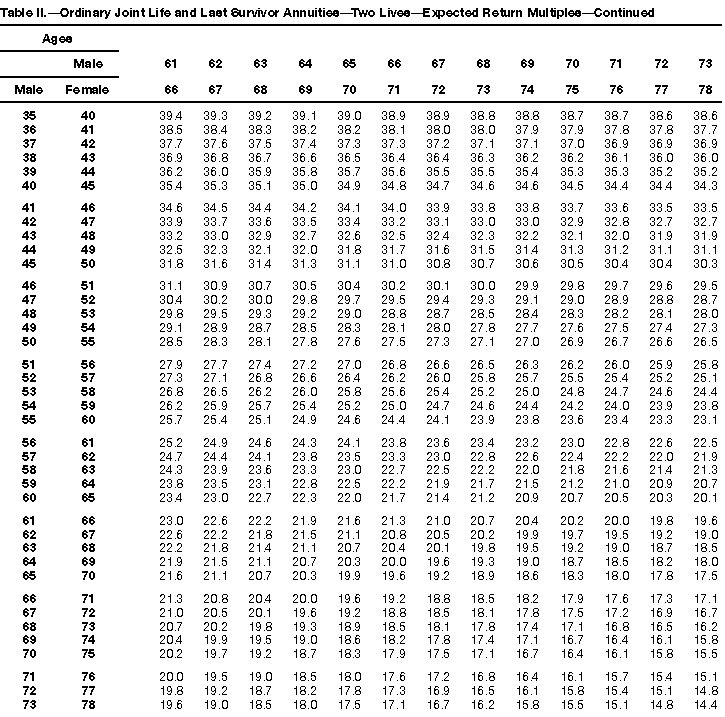 Table II. Ordinary Joint Life and Latest Survivor Annuitee - Two Lives - Expected Returns Multiples