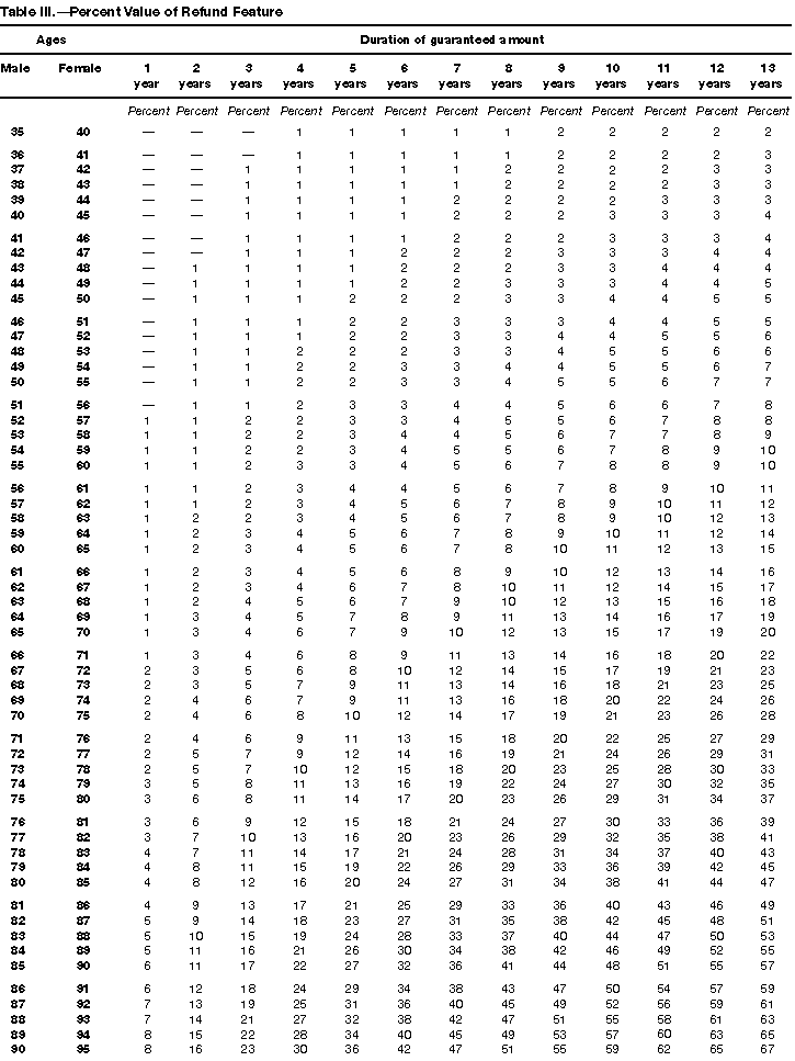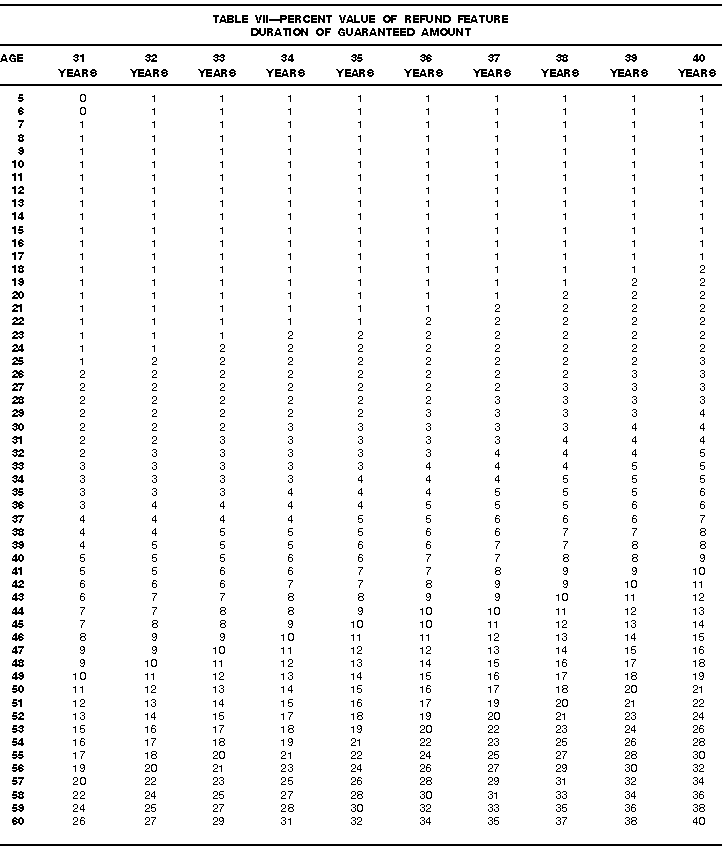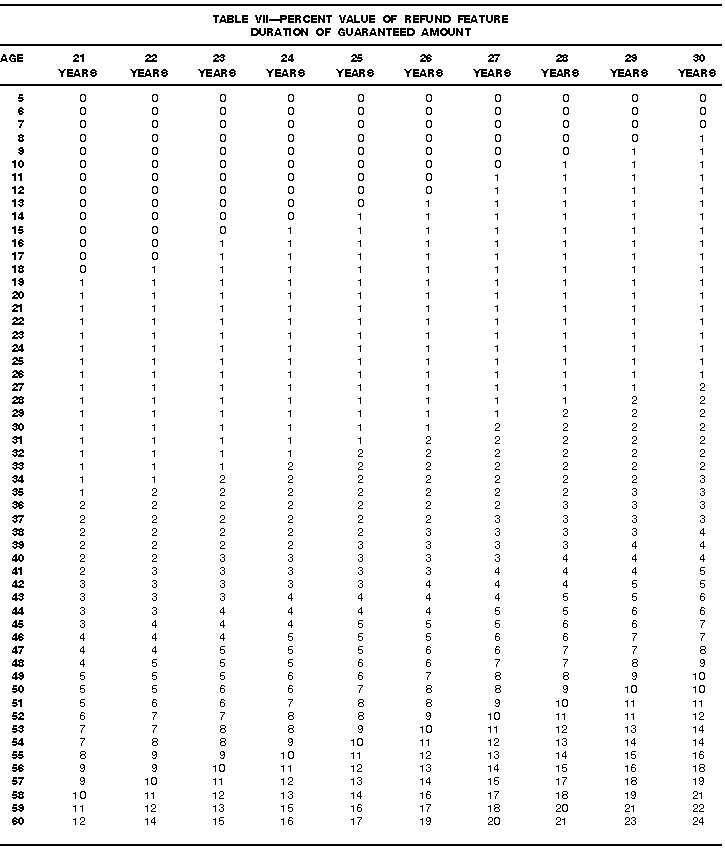 Table VII. Percent Value of Refund Feature - Duration of Guaranteed Amount