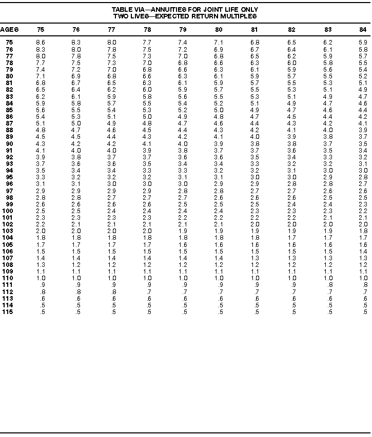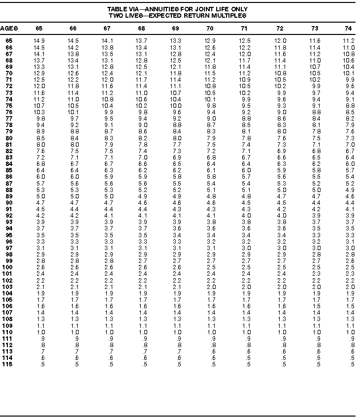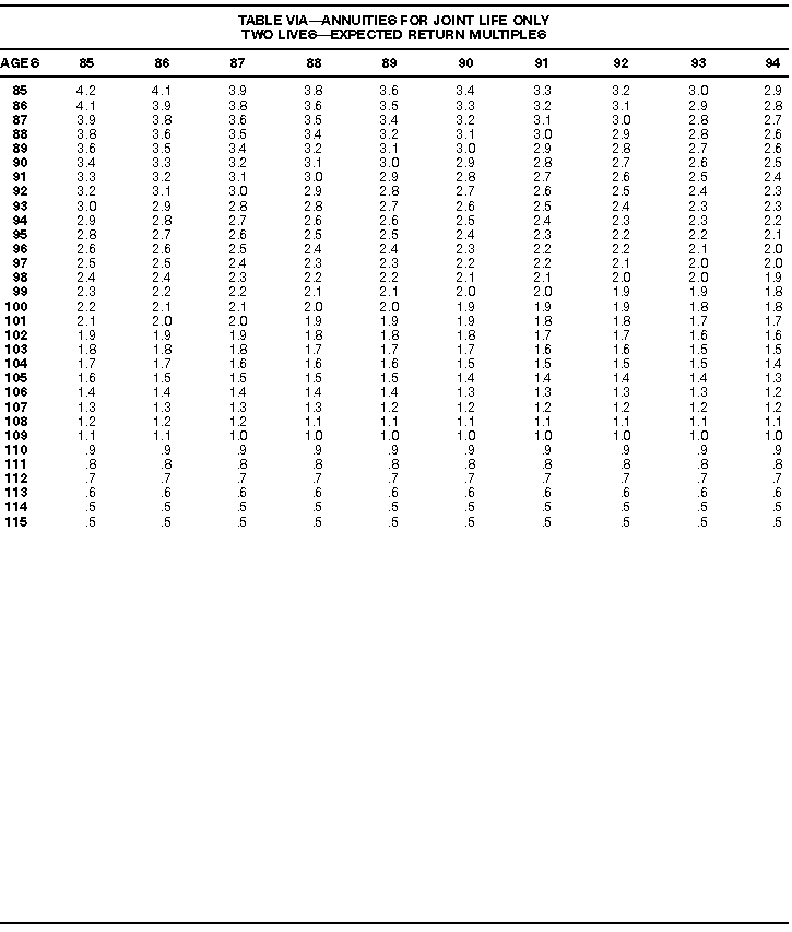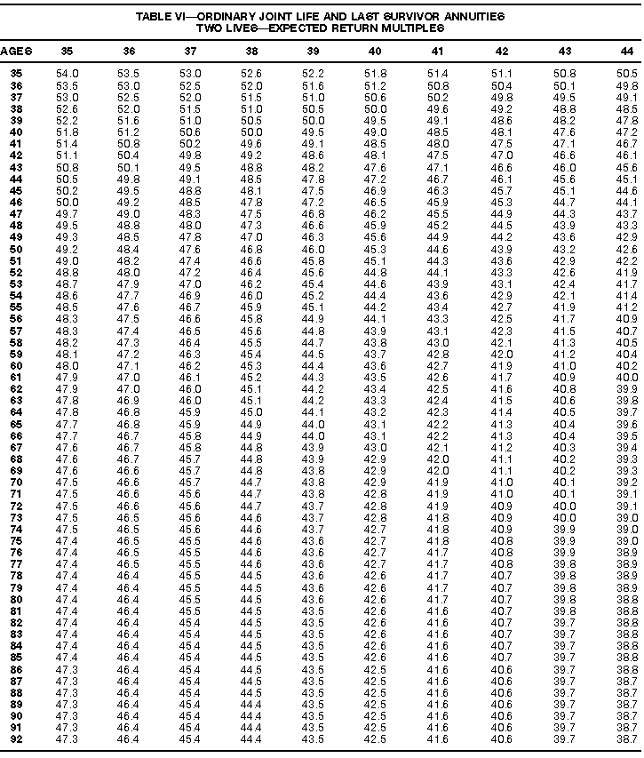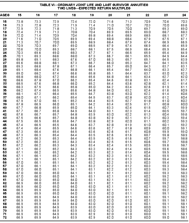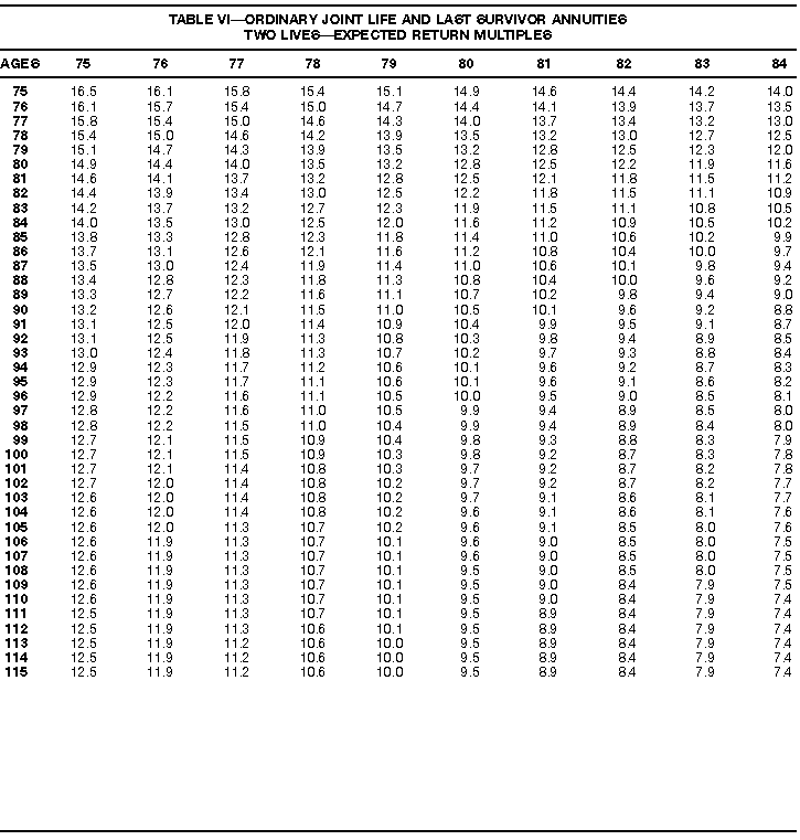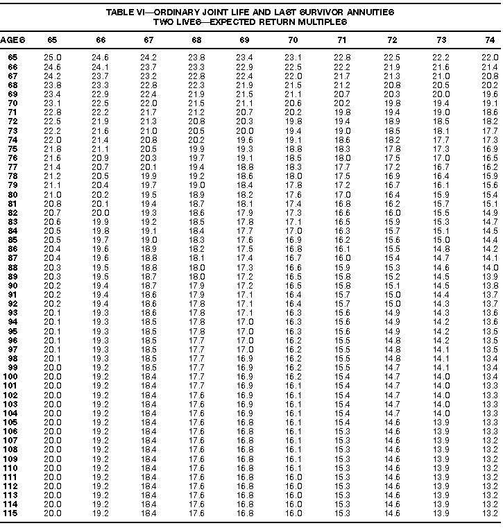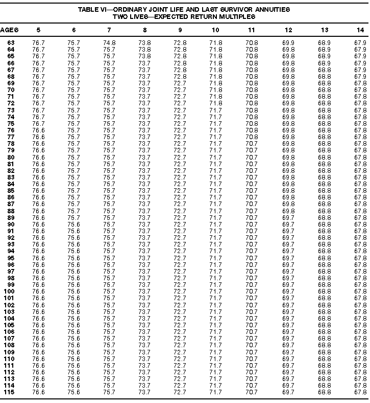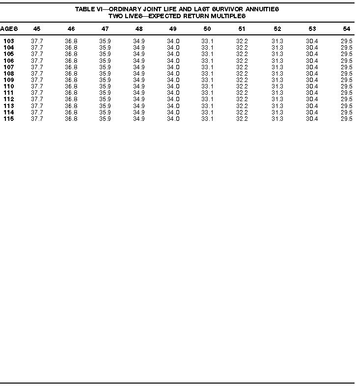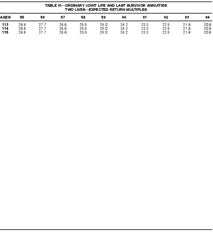 Table VI. Ordinary Joint Life and Last Survivor Annuities - One Life - Expected Return Multiples