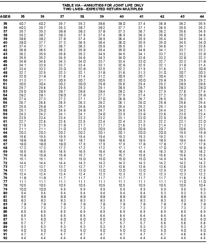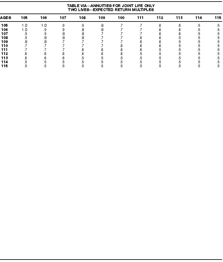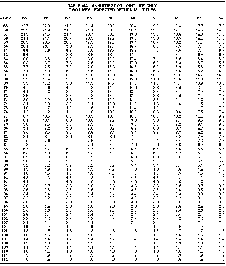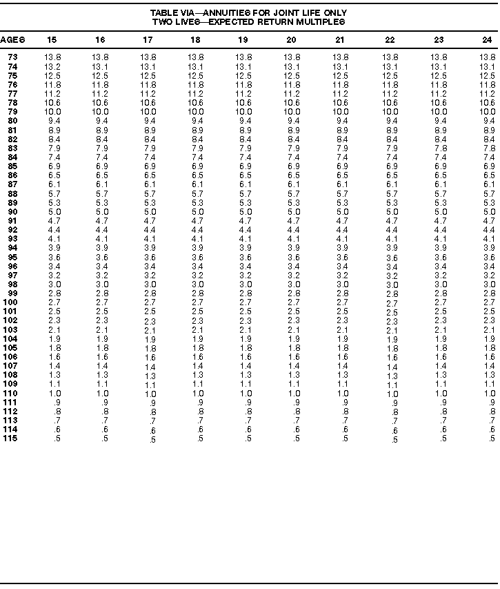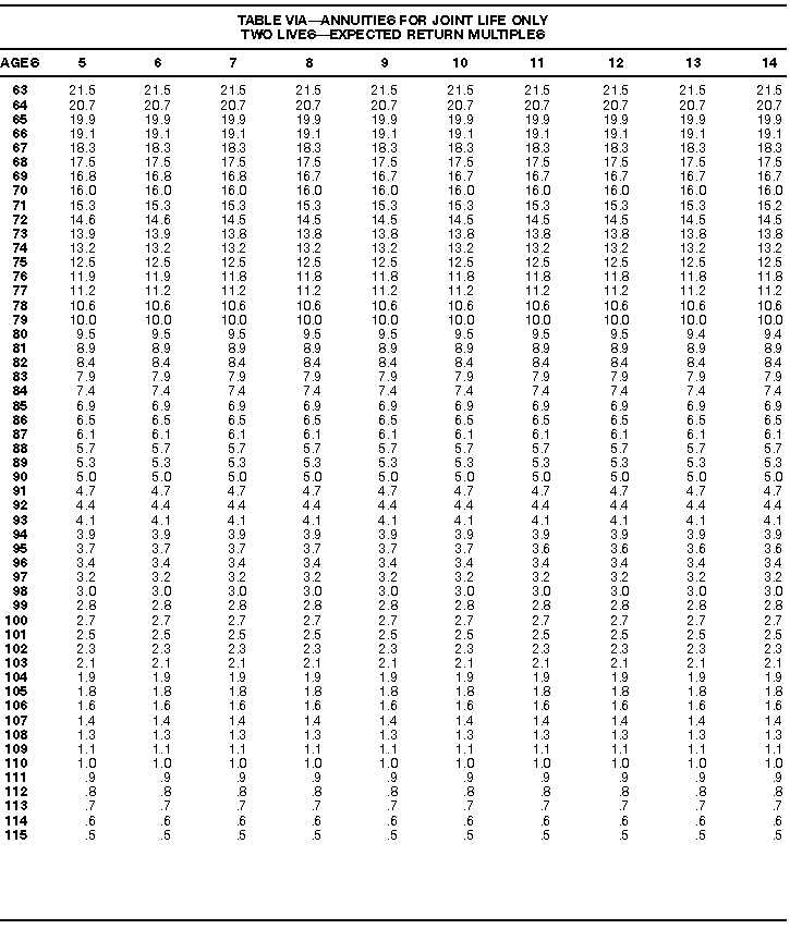Table VIa. Annuities for Joint Life Only - Two Lives - Expected REturn Multiples