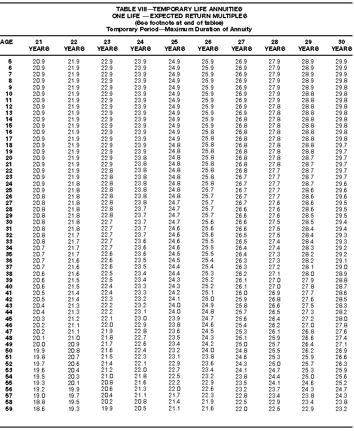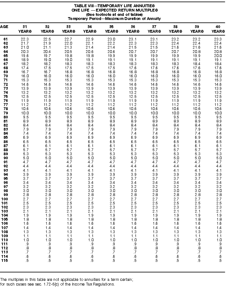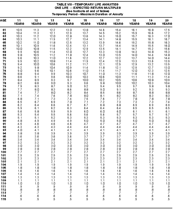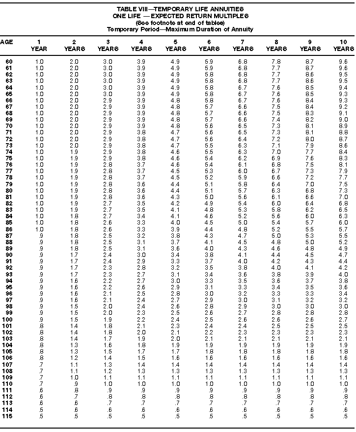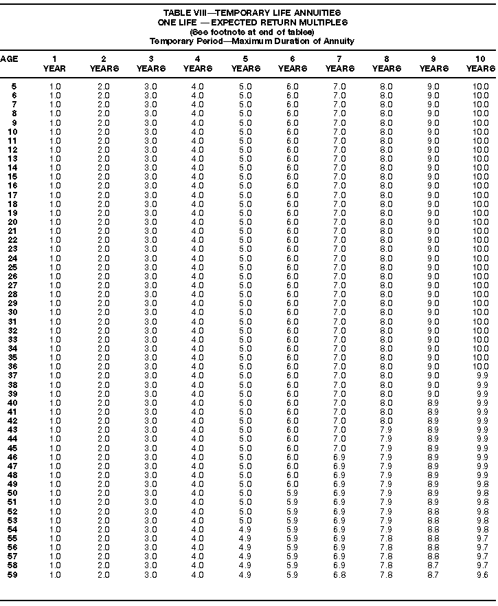 Table VIII. Temporary Life Annuities - One Life - Expected Return Multiples