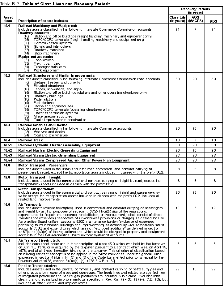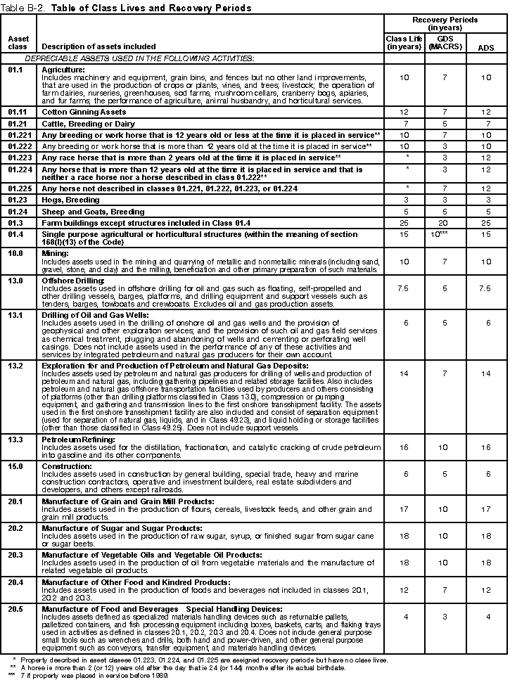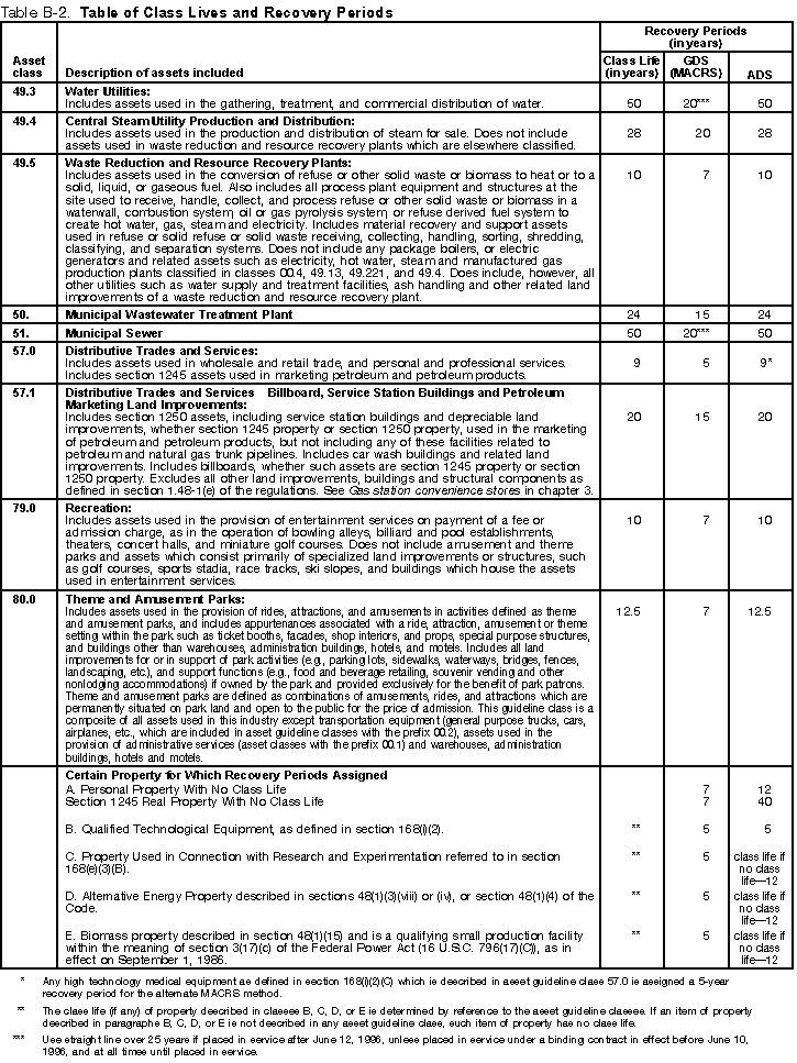 in that asset class. If it is, use the recovery period shown in the appropriate column of Table B-2 following the description of the activity. If the