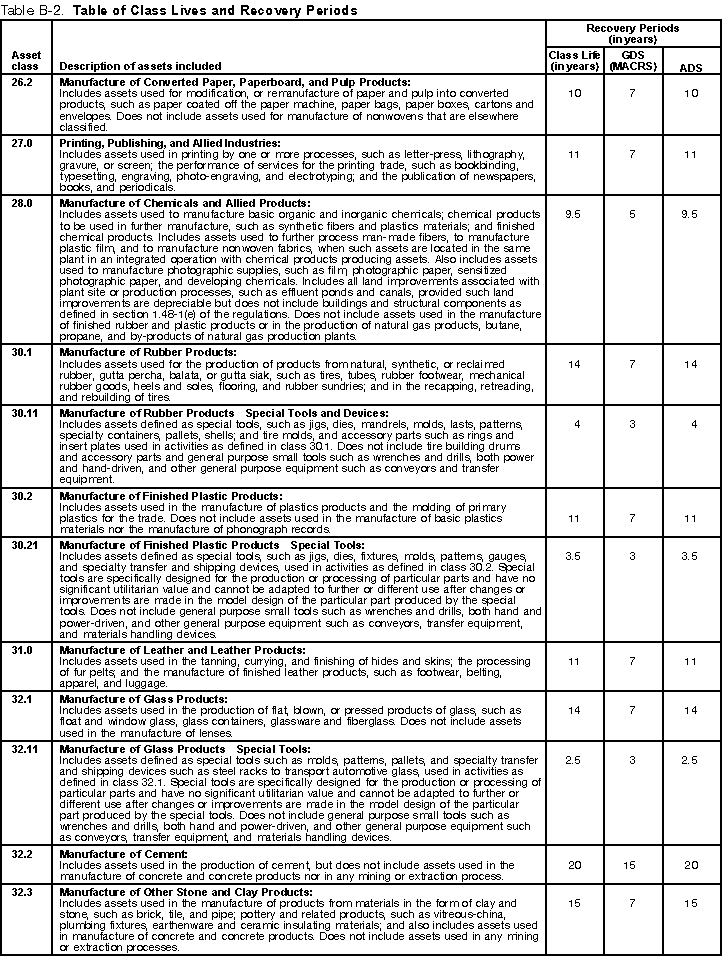 from that asset class, then use the recovery period shown in the appropriate column following the description of the property in Table B-1.