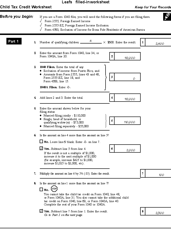 Leaf's Child Tax Credit Worksheet page 1