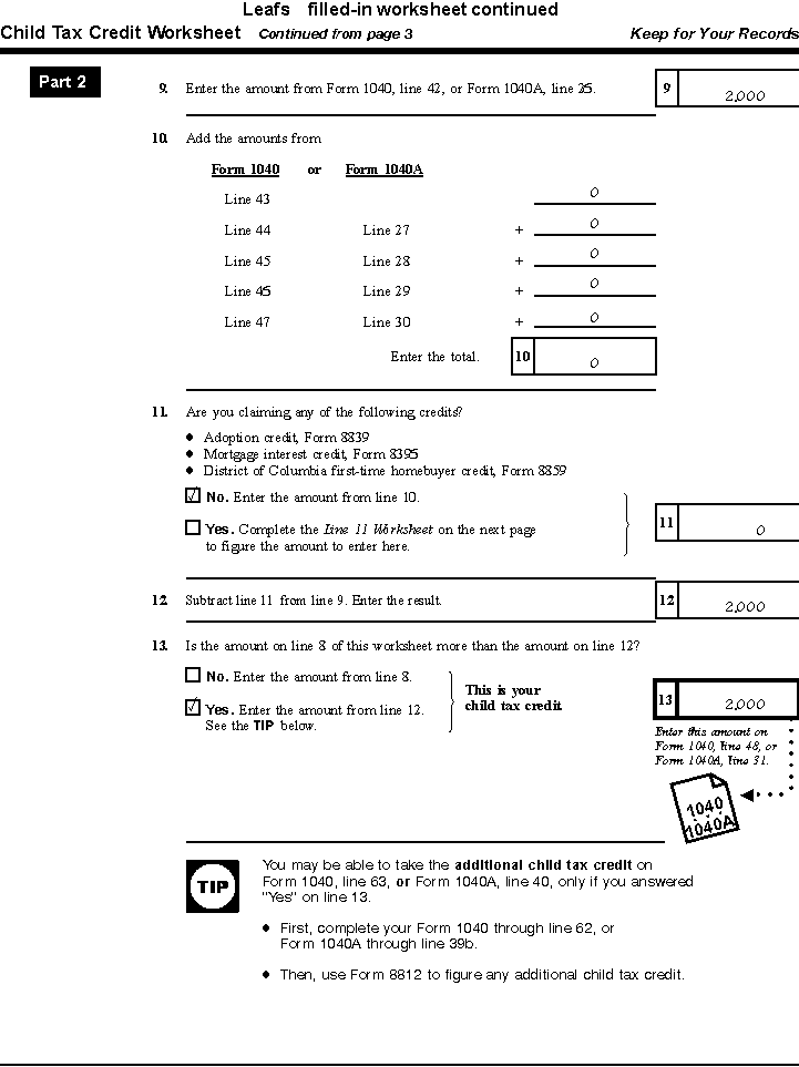Leaf's Child Tax Credit Worksheet page 2