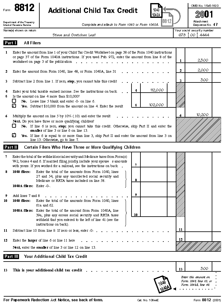 Leaf's Filled-in Form 8812