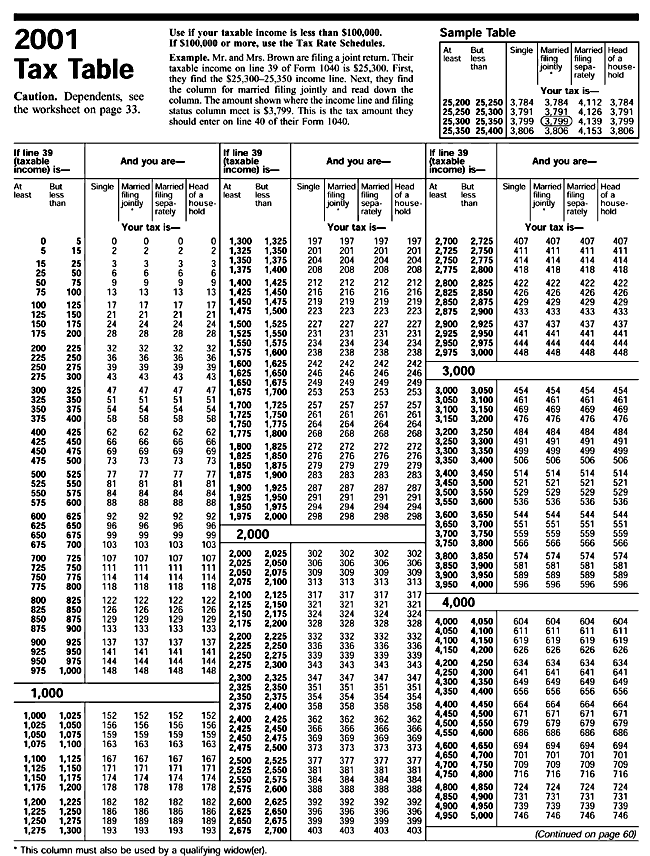 This is archived information that pertains only to the 2001 Tax Year. If youare looking for information for the current tax year, go to the Tax Prep Help Area.