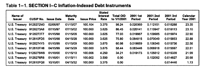 When Publication 1212, List of Original Issue Discount Instruments, was printed, SECTION I C, Inflation-Indexed Debt Instruments, was not included. The OID on inflation-indexed instruments for 2001 is now available.