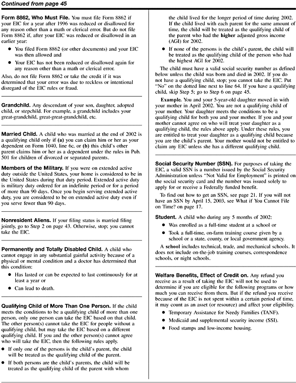 Tax Prep Help Archives > 2002 > 1040 Instructions > Form 1040 Instructions - Lines 64, EIC, Earned Income Credit, Details