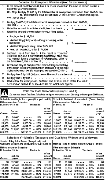 Deduction for Exemptions Worksheet and 2000 Tax Rate Schedules