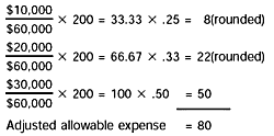 You listed three distributions in Part II of Form 706-GS(D). The value of the first distribution is $10,000 and has an inclusion ratio of .25. The value of the second distribution is $20,000 and has an inclusion ratio of .33. The value of the third distribution is $30,000 and has an inclusion ratio of .50. You received the completed return from the preparer along with the bill for the preparer's fee on April 14 and filed the return on April 15. You paid the preparer's $200 fee on April 20. The adjusted allowable expense you should report on line 4 of Part III is $80, calculated as follows: