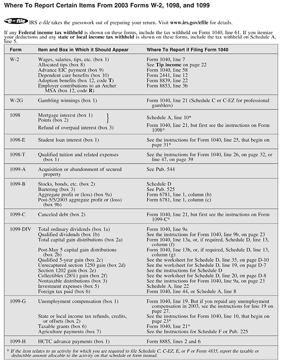 Where to Report Certain Items From 2003